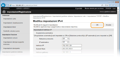 Fare clic su [Modifica] in [Impostazioni IPv4].