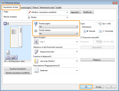 Selezionare il formato carta in [Formato stampa]