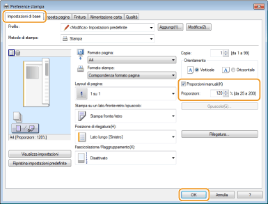 Le impostazioni di ingrandimento/riduzione di alcune applicazioni sono prioritarie su quelle del driver stampante.