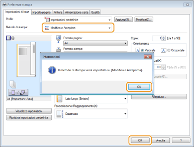 Selezionare [Modifica e Anteprima] in [Metodo di stampa].
