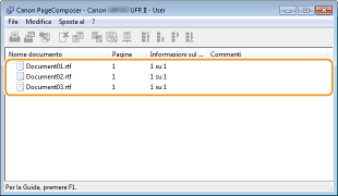 Con Canon PageComposer è possibile combinare più documenti in un lavoro di stampa e stampare il lavoro con le impostazioni di stampa specificate. Questa funzione, ad esempio, consente di combinare documenti creati con applicazioni diverse e stampare tutte le pagine nello stesso formato.