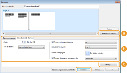 Se necessario, modificare le impostazioni e fare clic su [Combina].