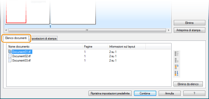 Dall'elenco [Nome documento], selezionare i documenti da combinare, quindi fare clic su