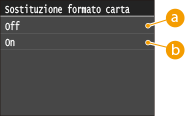 Selezionare per stampare in formato A4 o Letter se è caricata carta in uno questi formati. Ad esempio, se si stampa un documento Letter ma è caricata solo carta A4, la macchina stampa il documento su carta A4.