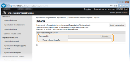 Immettere la password impostata durante l'esportazione delle impostazioni.