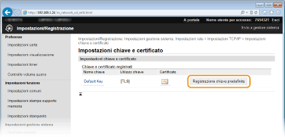 Fare clic su [Chiave e certificato] in [Impostazioni TLS].