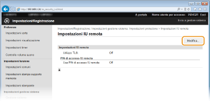 Fare clic su [Impostazioni protezione]  [Impostazioni IU remota].