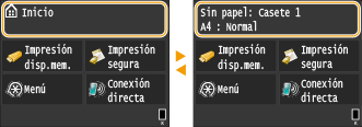 , aparece una pantalla que le permite consultar el estado del documento que se está imprimiendo, así como el estado del equipo (cantidad restante en el cartucho de tóner, etc.) o información sobre la configuración de la red, como la dirección IP del equipo.