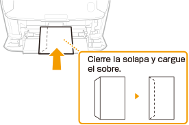 Esta sección describe cómo cargar sobres en la orientación deseada, así como los procedimientos que debe seguir antes de cargar sobres.Para obtener una descripción del procedimiento general para cargar sobres en la bandeja multiuso, consulte Carga de papel en la bandeja multiuso.