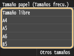 Si no aparece el tamaño de papel cargado, pulse <Otros tamaños>.