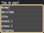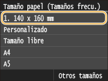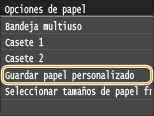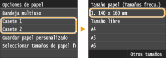 Cuando se selecciona el tamaño de papel para el casete de papel