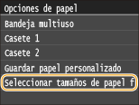 Para mostrar los tamaños de papel cuyas casillas de verificación se han desmarcado, pulse <Otros tamaños> en la pantalla de selección de tamaño de papel.