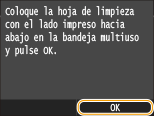Quite el papel cargado antes de cargar la hoja de limpieza.
