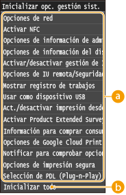 Si se inicializan las opciones de la IU remotaEl PIN de acceso a la IU remota también se inicializa.Tras una inicialización, vuelva a establecer el PIN de acceso a la IU remota. Configuración de un PIN para la IU Remota