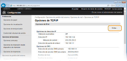 Haga clic en [Editar] en [Opciones de IPv4].