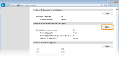 Haga clic en [Editar] en [Opciones de detección de multidifusión].