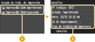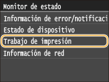 ![]() <Estado de trab. de impresión>Muestra la lista de documentos que se están procesando o a la espera de procesarse.