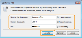 Introduzca el [Nombre del documento], [Nombre de usuario], y [PIN] y haga clic en [Aceptar].