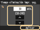 Especifique el periodo de tiempo durante el cual el equipo conservará los documentos protegidos, y pulse <Aplicar>.