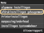 Alle instellingen voor de USB afdruk worden kort toegelicht. Standaardinstellingen worden aangegeven met een dolksymbool (