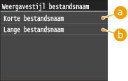 Selecteer <Korte bestandsnaam> of <Lange bestandsnaam>