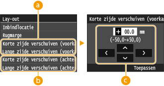 <Korte zijde verschuiven (achterkant)>/<Lange zijde verschuiven (achterkant)>