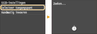Als u de draadloze verbinding instelt door een draadloze router te selecteren, wordt de WEP-verificatiemethode ingesteld op <Open systeem> of de WPA/WPA2-coderingsmethode op <Automatisch> (AES-CCMP of TKIP). Als u <Gedeelde sleutel> wilt selecteren voor WEP-verificatie of <AES-CCMP> voor codering met WPA/WPA2, moet u de verbinding handmatig instellen ( De verbinding instellen door gedetailleerde instellingen op te geven).