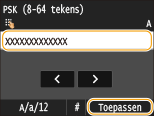Voer de netwerksleutel in met de numerieke toetsen en tik op <Toepassen>.