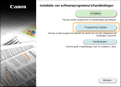 Klik op [Starten] voor [Canon MF/LBP-assistent draadloze verbinding instellen].