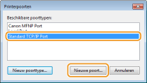 Selecteer [Standaard TCP/IP poort] bij [Beschikbare poorttypen] en klik op [Nieuwe poort].