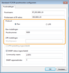 Als u [Raw] hebt geselecteerd, verandert u het [Poortnummer].