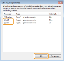 Afhankelijk van het besturingssysteem en de bitarchitectuur (32-bits of 64-bits) van de printserver en de clientcomputers, is het misschien niet mogelijk stuurprogramma's via het netwerk te installeren.