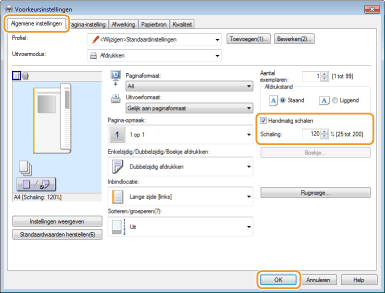 De instellingen voor vergroten/verkleinen in bepaalde programma's hebben prioriteit boven de desbetreffende instellingen in het printerstuurprogramma.