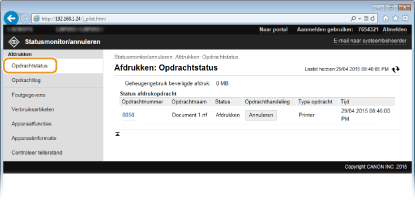 Ongeacht de instelling van Afdeling-ID beheer, bevat de lijst alle afdruktaken die worden afgedrukt en die wachten op afdrukken.
