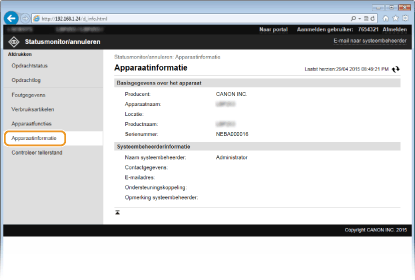 Klik op [Opdrachtnummer] op de gepauzeerde documenten en de beveiligde documenten om gedetailleerde informatie weer te geven. U kunt de gebruikersnaam en de paginatelling van het afgedrukte document controleren.