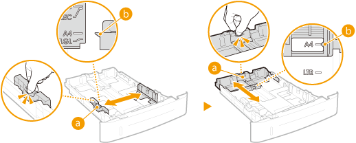 Para papéis de tamanho A5 ou superior Para papéis de tamanho inferior a A5 |