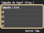 Se não aparecer o tamanho do papel colocado, toque em <Outros Tam.>.