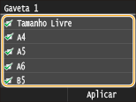 Para visualizar os tamanhos de papel cujas caixas de verificação não estão selecionadas, toque <Outros Tam.> no ecrã de seleção de tamanho do papel.