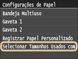 Pode certificar-se de que apenas os tamanhos de papel mais utilizados são apresentados no ecrã para selecionar a definição de tamanho do papel.