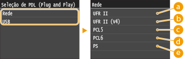 Selecione uma linguagem de descrição de páginas para que a máquina seja detetada como uma impressora compatível com a linguagem em questão quando for detetada na rede.