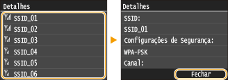 Toque em <Detalhes> e selecione o router de LAN sem fios. Para regressar ao ecrã original, toque duas vezes em <Fechar> e prima
