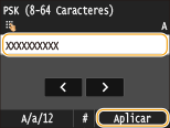 Introduza a chave de rede utilizando as teclas numéricas e toque em <Aplicar>. Introduzir texto