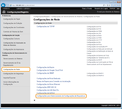 [Configurações para Gerenciamento de Configurações de Dispositivos].