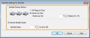 Clique [Booklet] (Brochura) e especifique definições de PDF detalhadas conforme necessário