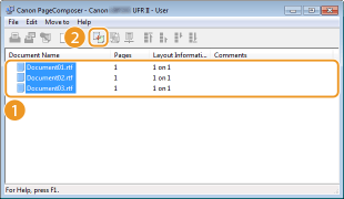 Os documentos são adicionados ao Canon PageComposer.