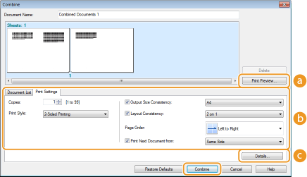 Altere as definições conforme necessário e clique em [Combine] (Combinar).