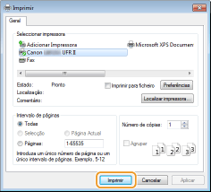 A forma de aceder à caixa de diálogo de impressão varia consoante a aplicação. Para obter mais informações, consulte o manual de instruções da aplicação que está a utilizar.