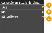 Ao imprimir dados de cor, é possível selecionar métodos de conversão dos valores de cor em valores da escala de cinzentos.