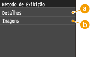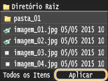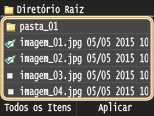 Pode mudar o método de visualização de <Detalhes> (para nomes de ficheiros e datas de modificação) para <Imagens> (para pré-visualizações). Com a pré-visualização de imagens, pode verificar o conteúdo dos ficheiros antes de selecionar um ficheiro para impressão.