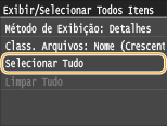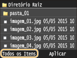 Se tiver selecionado um ficheiro antes de tocar em <Todos os Itens>, pode selecionar apenas ficheiros com o mesmo formato.